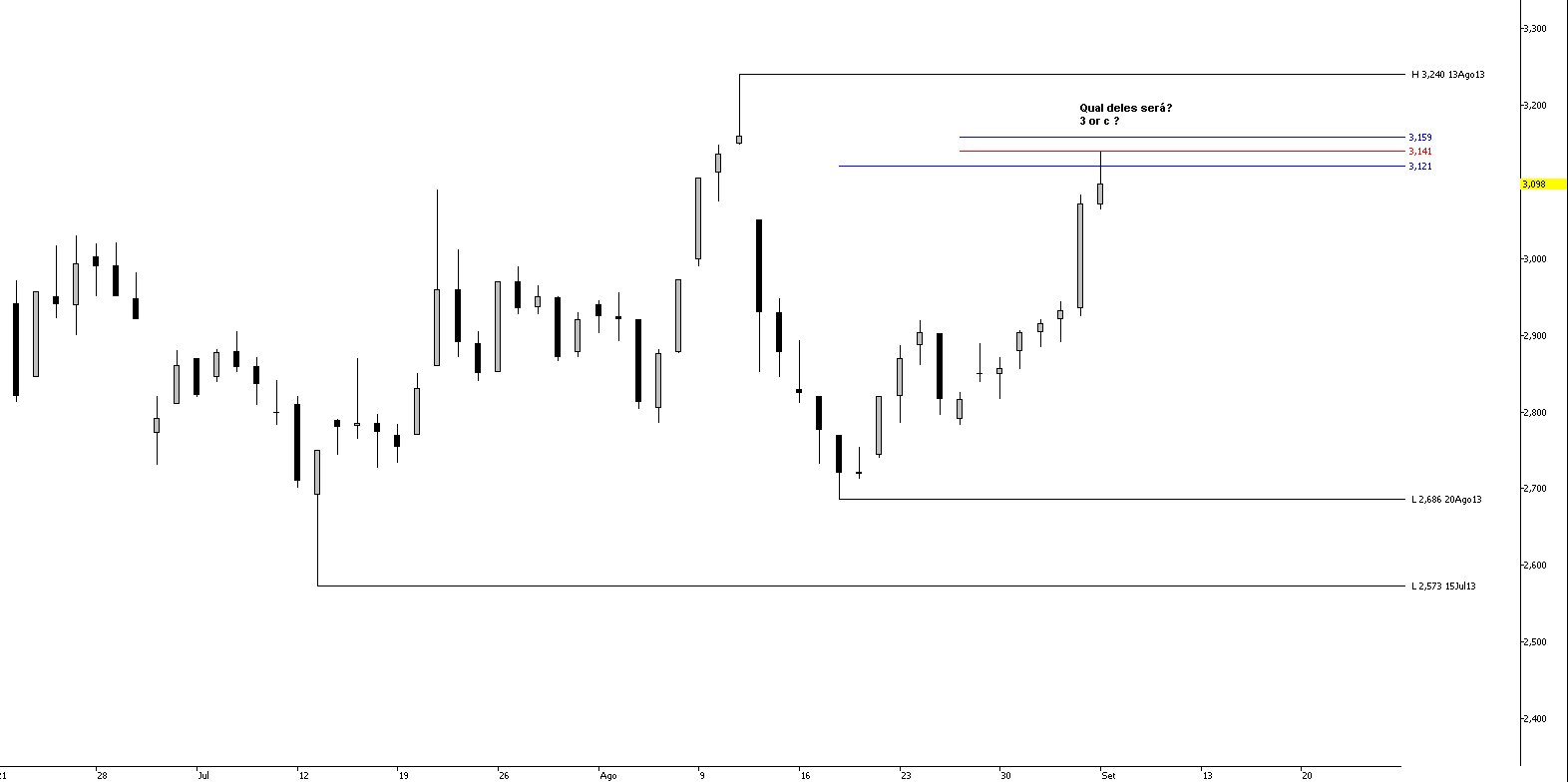 Eu penso que até á zona dos 3.25 tem caminho aberto, ai encontrará uma resistencia que serviu de suporte em dezembro de 2012 e que já cheirou em agosto mas que rapidamente a fez vir para baixo. Até essa zona penso que chegará, quebrá-la poderá ser mais dificil, seria otimo, a ver vamos.