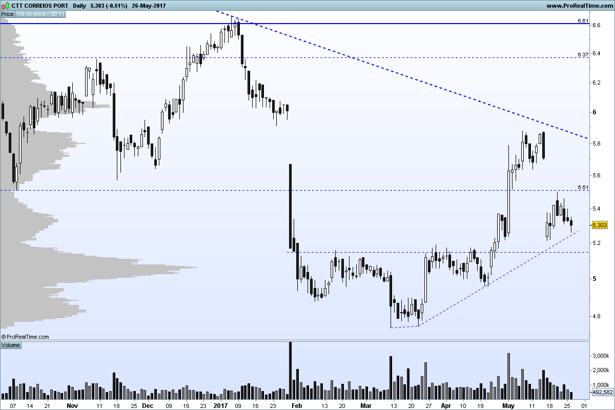 Para além disso, a minha expectativa de correção em Junho do PSI20 (não afectando o Bull de longo prazo), faz com que CTT não tenha uma "narrativa" a sobreponderar até resultados do 2º trim.