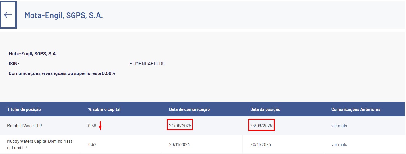 Claro está que se "amanhã" a NATO invocar o artigo quinto, ou a China invadir Taiwan, ou a cotação das magnificent 7 colapsar por maus resultados, ou a França tiver de ser resgatada... não será só a Mota que eu vendo, mas sim toda a minha carteira de ações.