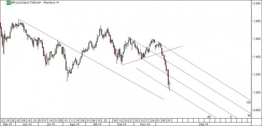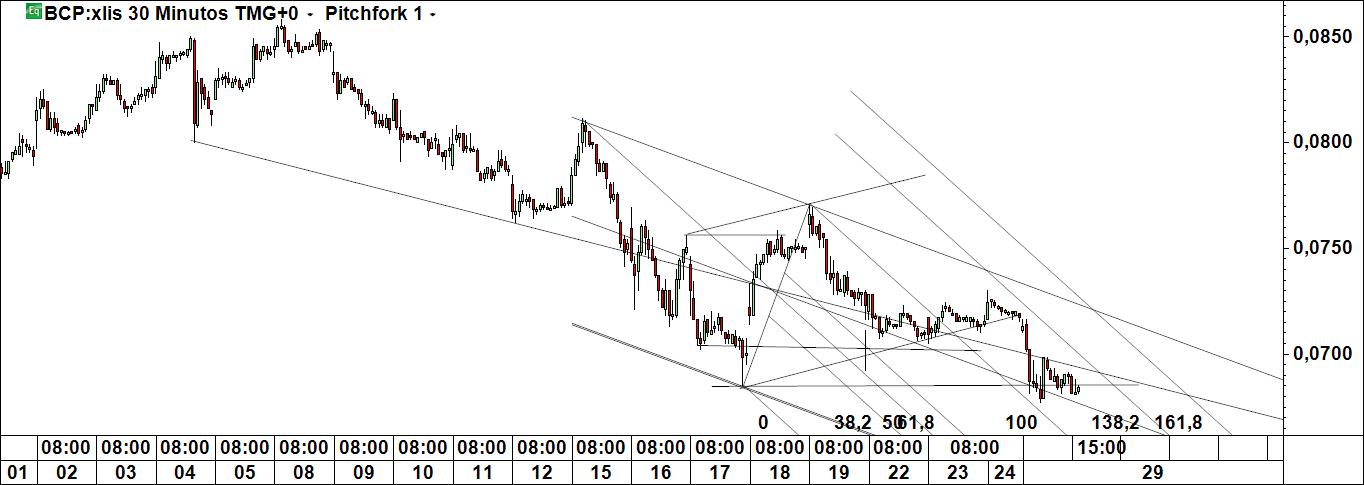 Ok. Esclareço que esse fork não se destinou a apanhar tal queda mas apenas para enquadrar o preço na sua actualidade. Podia ter sido desenhado um pouco antes para tentar apanhar a descida? Podia. Fi-lo? Não.