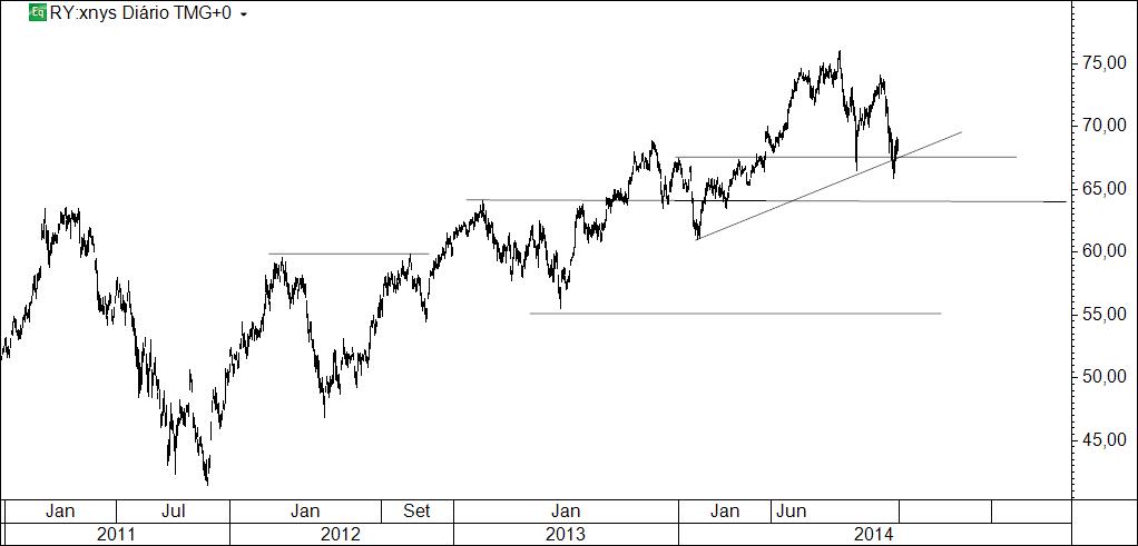 Agora, lanço-lhe um desafio (também para quem nos acompanha neste interlúdio). Não é necessariamente para me responder, é só para se entreter. Apague as linhas azuis e suas paralelas e fique apenas com o fork vermelho, as linhas horizontais e a área de consolidação. Construa uma "oportunidade especulativa" à sua maneira só com base nessa informação.