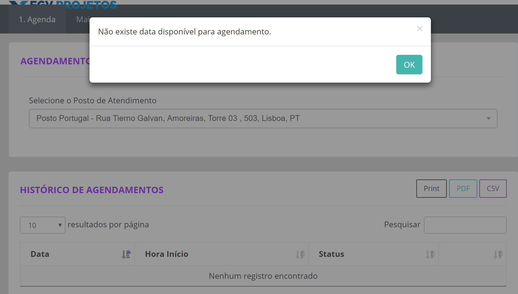 Boas, assim que li esta informação tentei agendar mas deu-ma a msg que não havia datas disponíveis...a mais um colega de problema também deu a mesma mensagem...