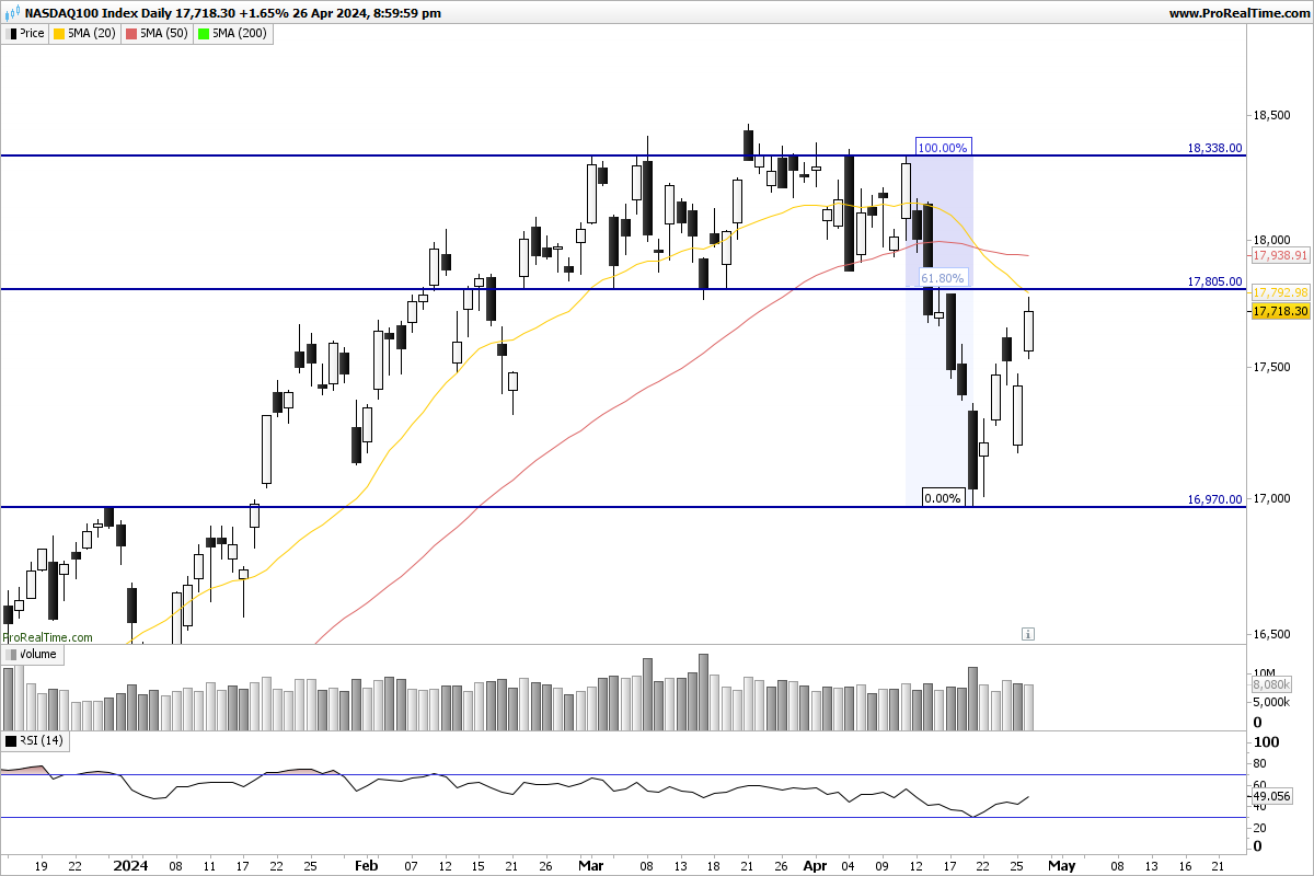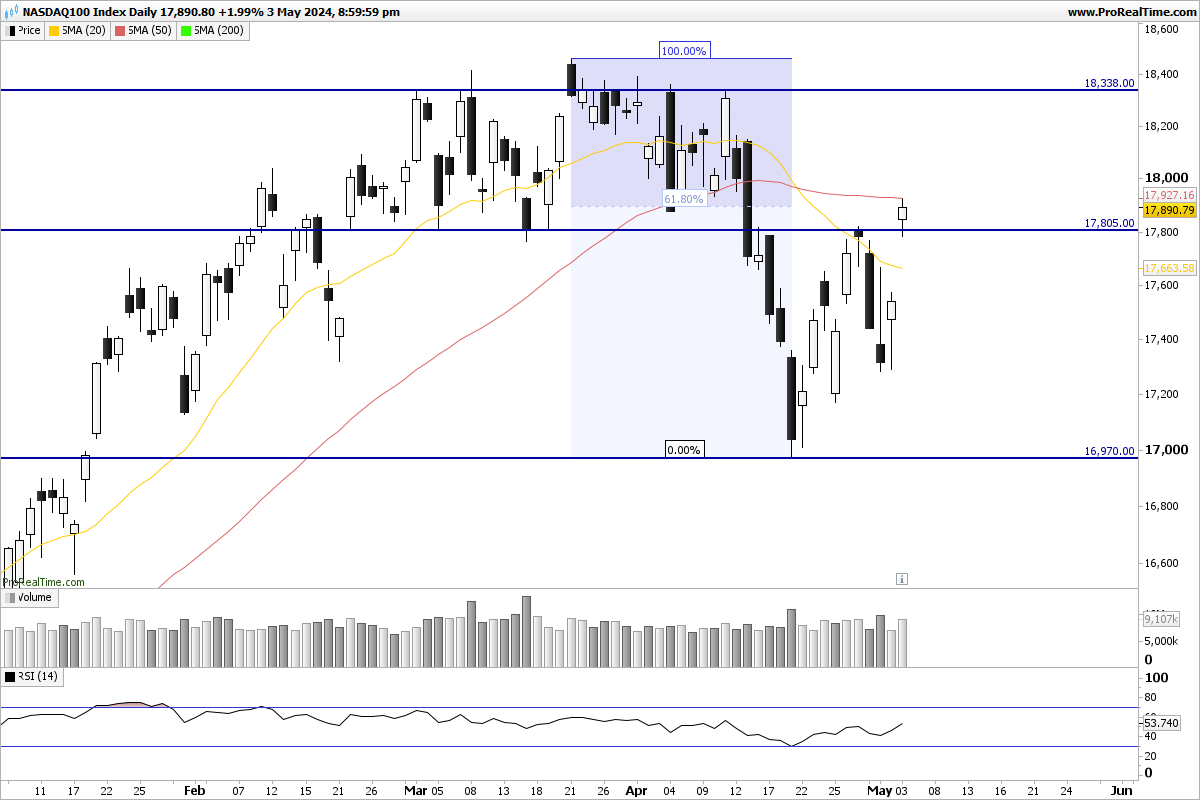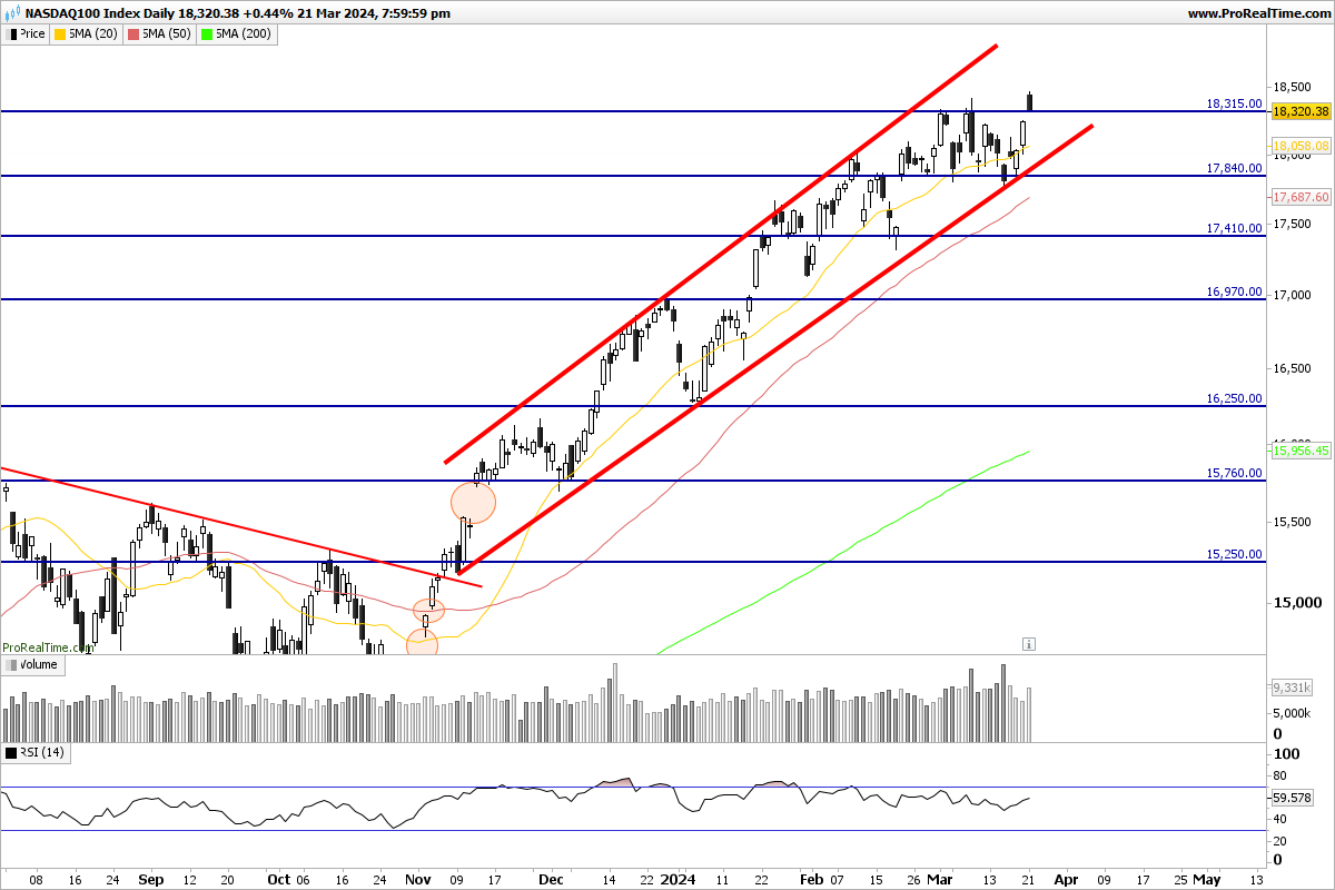 O nasdaq 100 tem agora o alvo em 18500. O facto de não ter caído sexta feira parece significar que a NVIDIA se dirige para 1000, o que animará o índice.