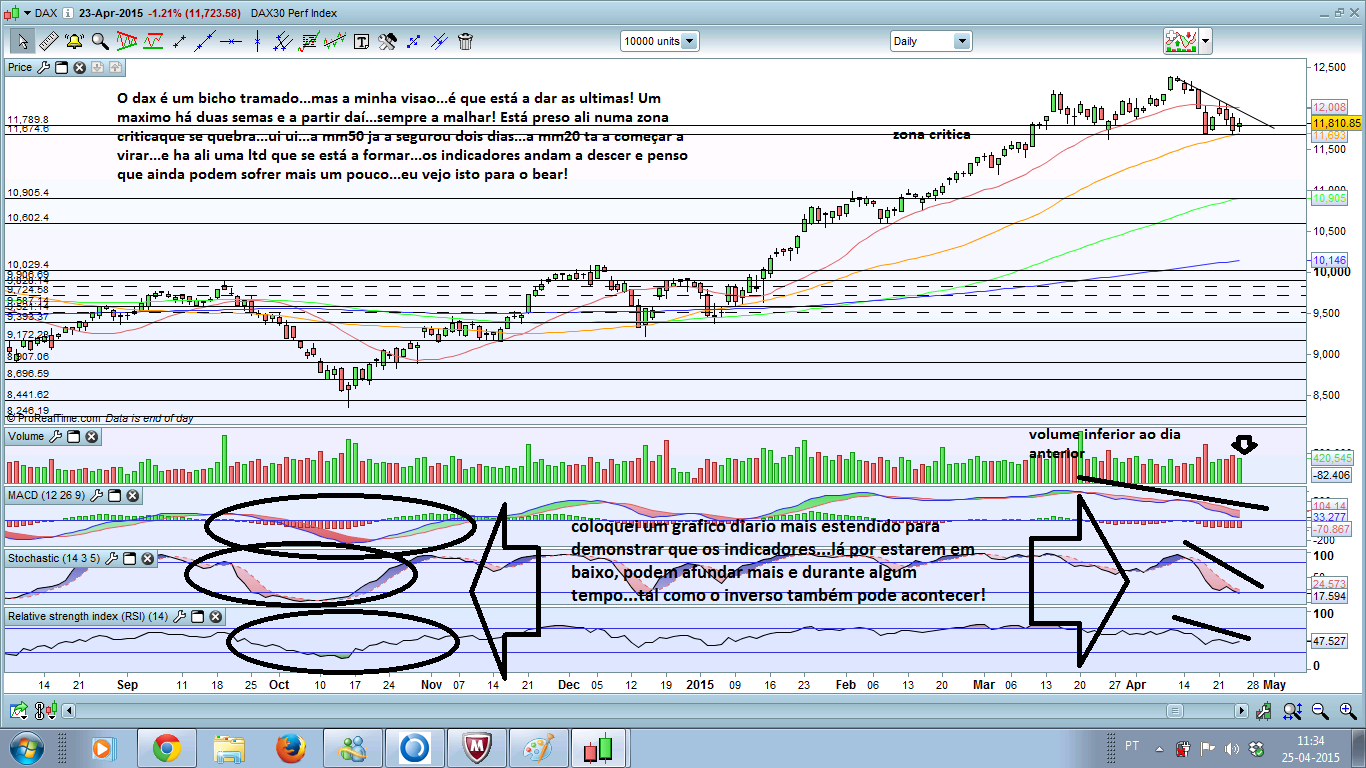 já no caso do DAX, vejo-o como um verdadeiro bicho de 7 cabeças com forte tendência para personalidade bi-polar, que dá muito a ganhar mas tb muito a perder. já me aconteceu das duas suficientes vezes para ser cauteloso nas entradas, e embora esteja longo, novamente, desde 6ªf, a minha posição é pequena até pq é um risco grande manter posições no DAX da noite para o dia seguinte, aquilo na abertura faz verdadeiras montanhas russas que dão facilmente cabo dos nervos quando se têm posições abertas maiores. ainda assim, face ao eventual abismo que representará a quebra do suporte, resolvi manter, mas smp com muita atenção ao que este bicho se vai lembrando de fazer.