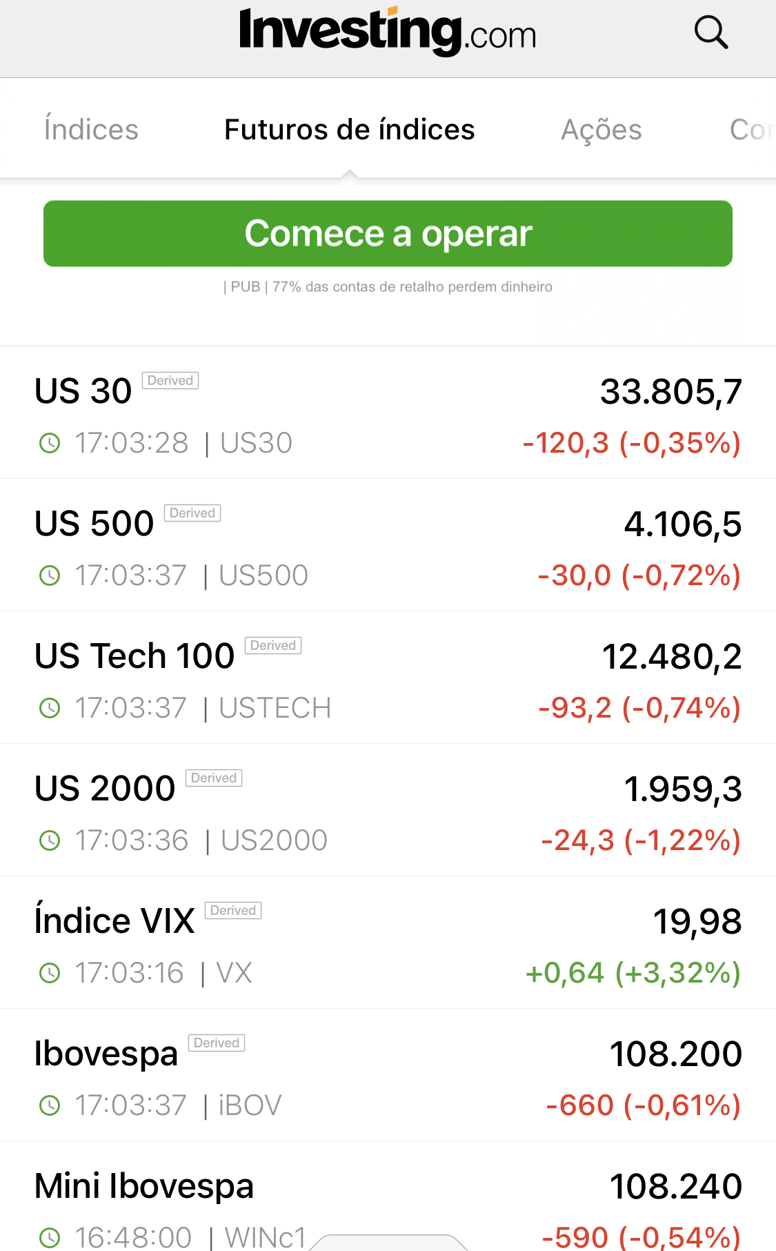 E lá disparou-me o stop, já tenho 2 lotes.