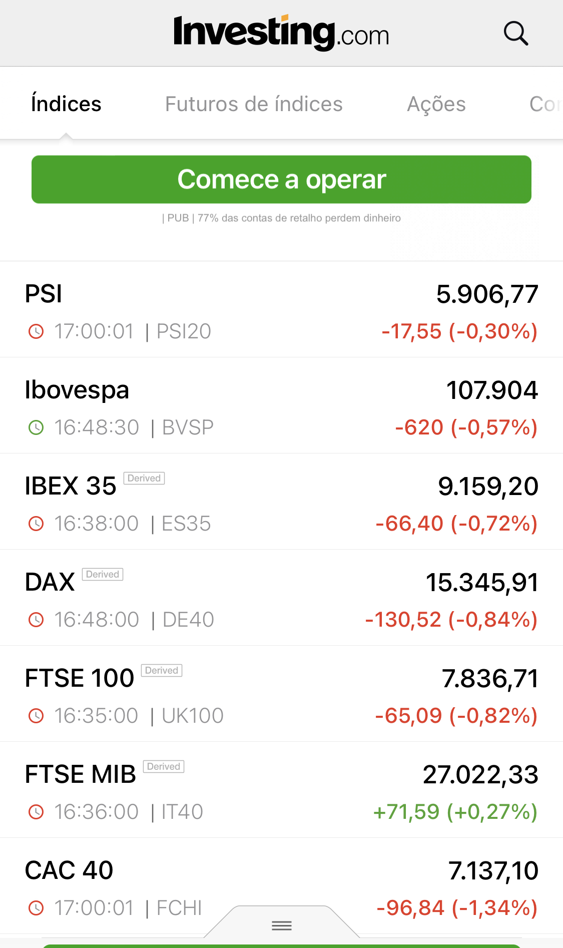 a fechar em máximos do dia, em contraciclo com o psi, e o resto do mundo….