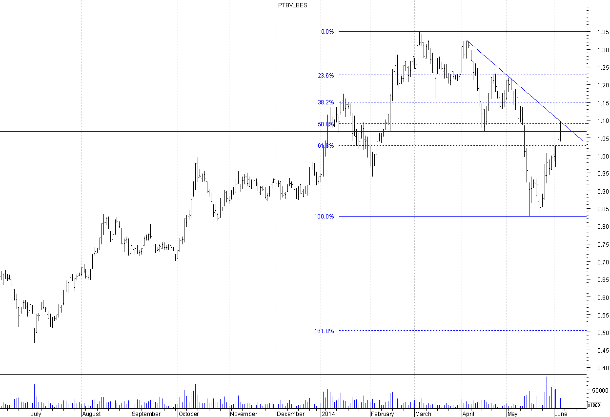 Se traçarmos uma fibo desde o primeiro ponto(~1,32) da ltd até aos minimos, hoje temos um toq nos 61% da fibo juntamente com a MM50 e 3º toq da linha! :shock:
