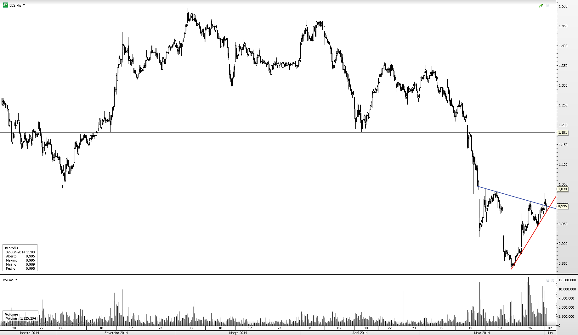 É de facto estranho. A minha posição curta foi stopada naquele spike manhoso... Desisto de shortar o BES. Provavelmente agora que sai, ele começa a descer