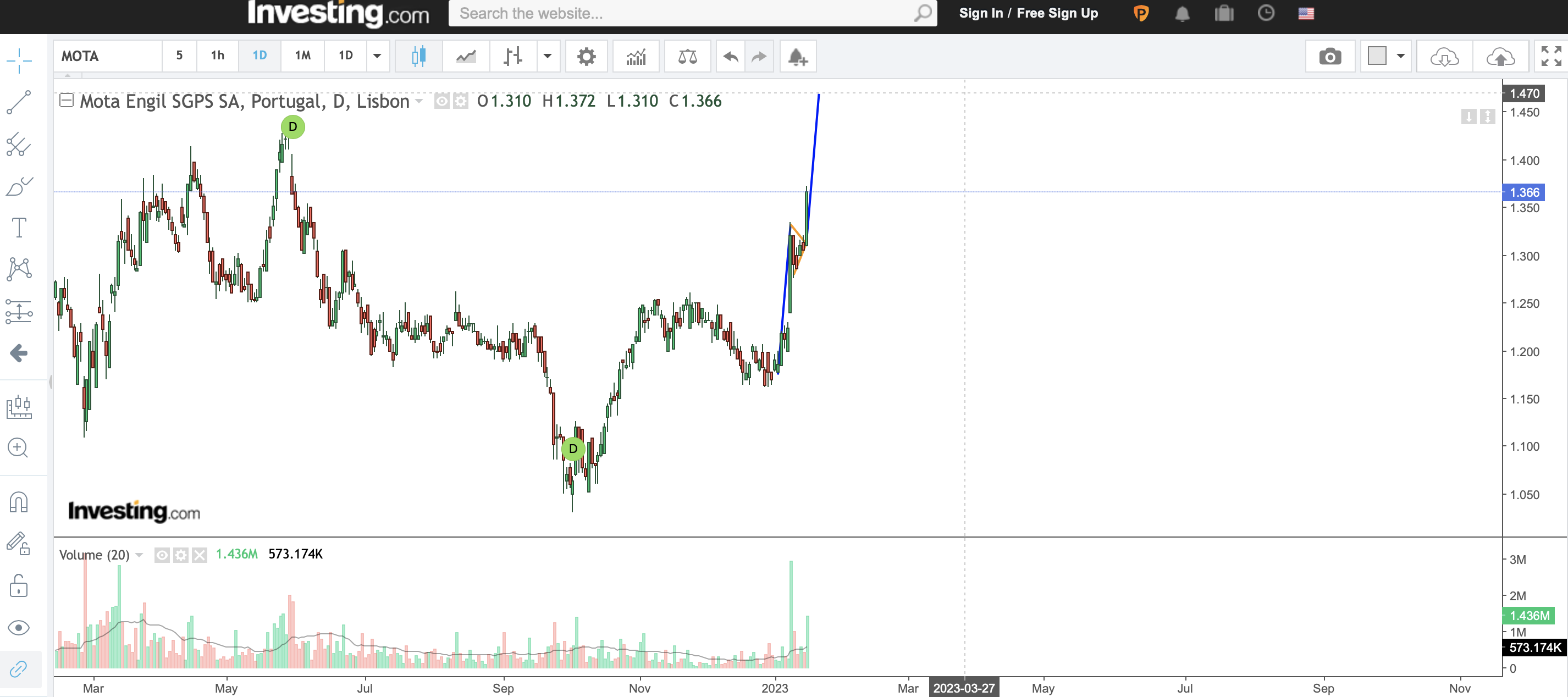 Está em cima de uma LTD, se conseguir quebrar em alta ai vai ela até perto dos 1.50€.