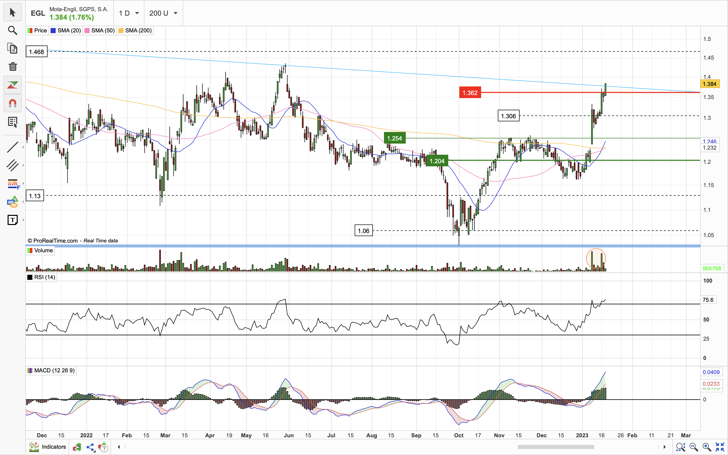 Hoje respirou um bocado, com menos volume, mas ainda assim 2 compras fortes no total de 250k ações nos ultimos 5 minutos de negociação a fazê-la recuperar. Parece haver interesse comprador, e cada vez que aparecem, fazem mexer a cotação. A acompanhar nos próximos dias, sempre conscientes que amanhã pode cair metade, mas a tendencia parece-me saudável.