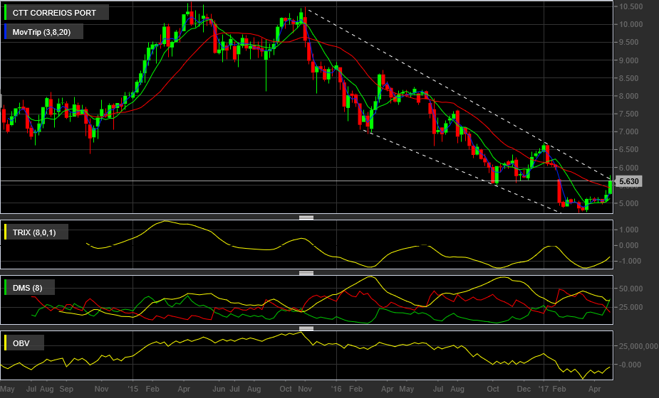 É clara a pressão vendedora e a estratégia dos curtos parece óbvia, não deixar subir e aguardar pela correcção para levar os CTT para dentro do canal descendente. É bem provável que o consigam fazer pois a pressão do lado da venda é grande.