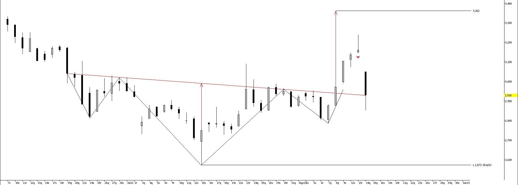 Enquanto não deixar para trás o mínimo do dia 15 de julho (€ 2,573), o movimento iniciado, nesse dia, continua bullish.