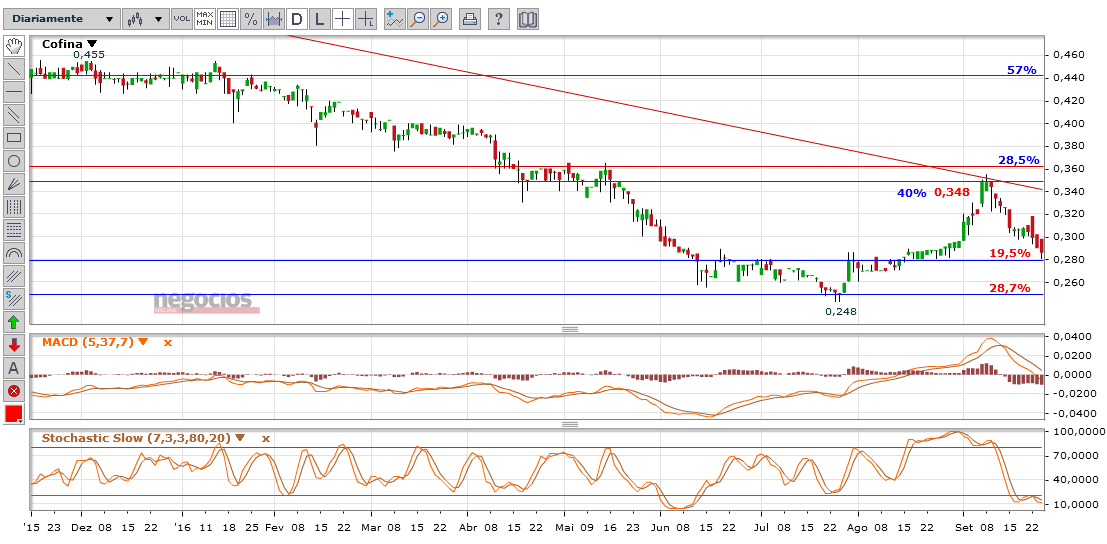 Mesmo assim, será cedo para dizer que a Cofina terá invertido a tendência. Isso só acontecerá provavelmente com um fecho semanal acima dos 0,8€, pois existe uma forte resistência na zona dos 0,74€.