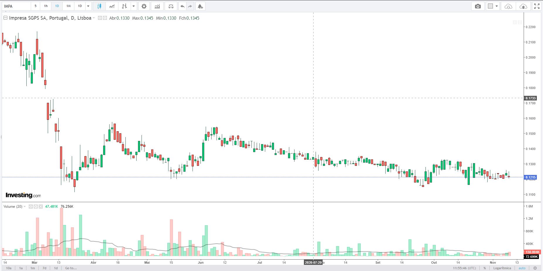 Ninguém tem pretendido comprar ações de uma maneira consistente , por pouco mais de 40 mil euros "podias" colocar a cotação nos 0.13€.