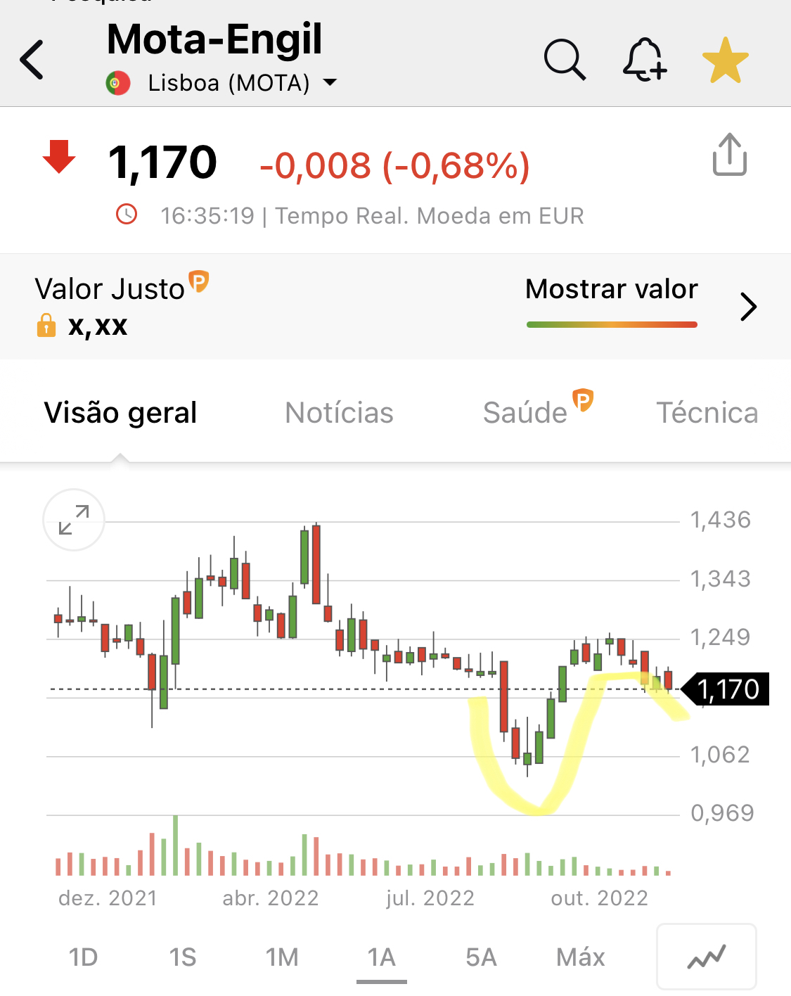 ou seja, poucos são aqueles que querem vender ao preço actual, e/ou, mais baixo, que os € 1,20