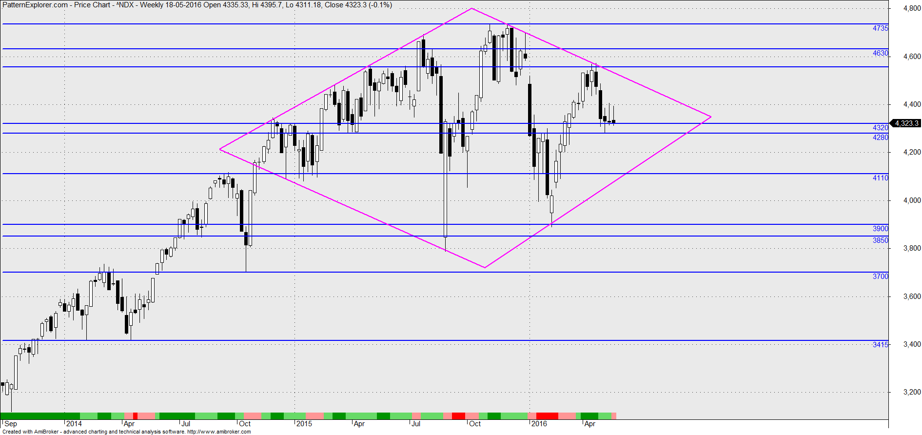Tanto o diario como o semanal estao laterais mas com indicadores na compra,o obv continua vigoroso no semanal,relevando que nao está a haver desalavancagem,rompendo em alta o topo anterior já algumas semanas atras(para que gosta,este indicador costuma antecipar alguns movimentos).Para quem gosta de elliott penso estarmos na onda 5 do super ciclo a romper maximos,cujo o target mantenho nos 2350pts(erro:a letra ao lado do 4 é a C e nao B).Pelo square 9 estamos a respeitar ainda o suporte dos 2038pts que corresponde aos 90graus entre maximos e minimos relativos e o proximo alvo de "curto" prazo tambem irei manter nos 2149 pts,portanto nada mudou desde há umas semaninhas até agora.A quebra em fecho dos 2038pts fará repensar a estrategia,ficam os graficos