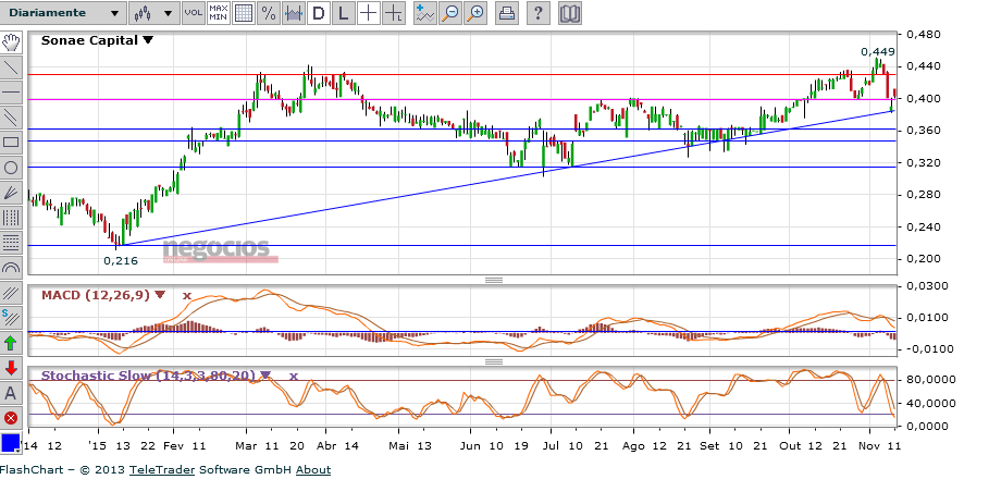 Mas penso que enquanto se mantiver acima dos €.41 mantém-se a expectativa que possa dar um salto... talvez la para os €.50 (considerando o ultimo salto acima dos .44 em Março de 2014)