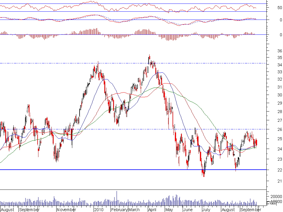 Não há grandes novidades a assinalar. O título prossegue a sua monótona lateralização entre os 22 e os 26 (parecendo ter-se formado um suporte de curtíssimo prazo nos 24).