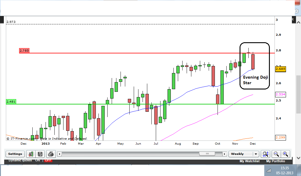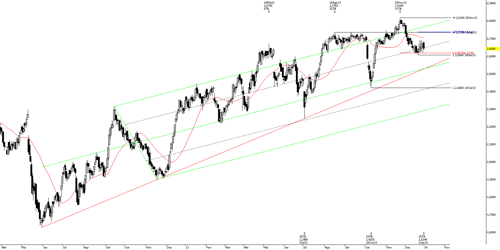 É provável que sim. Esperemos por uma reação ao suporte que representa a linha de tendência ascendente e depois poderá ser a altura certa para entrar(com um stop um pouco abaixo da linha de tendência).