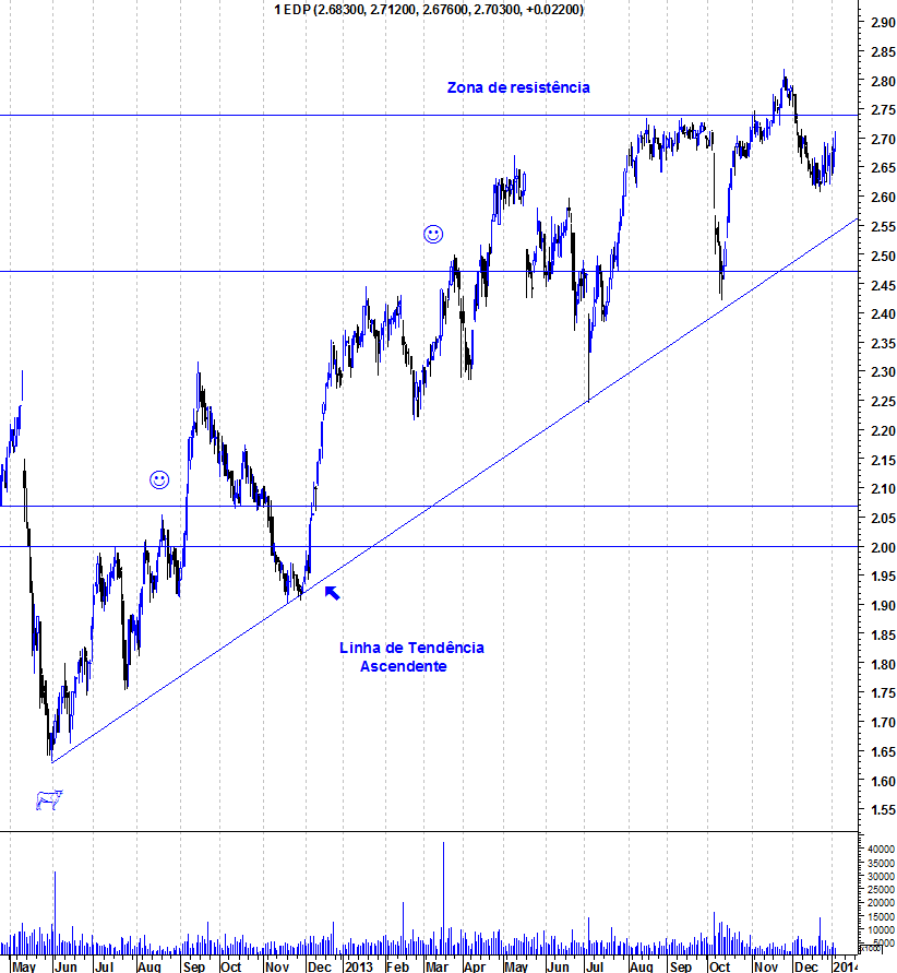 Não me parece que existam dúvidas. O gráficos do Ulisses são esclarecedores. Enquanto grande parte dos investidores tem os olhos na banca, que de facto terá potencial maior (pelas restruturações que está a fazer e pela melhoria da economia) a EDP vai subindo e tomando o caminho já muito aguardado percorrendo um caminho com próxima estação nos 3,20 e quebrando deveremos observar a chegada ao preço pago pelos Chineses por ela.