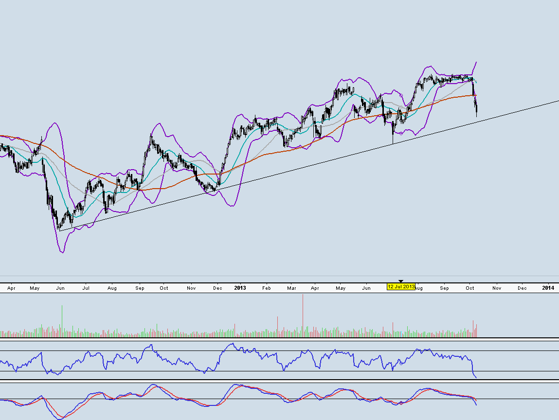 A minha opinião e pelo que anoto no meu gráfico, é que está em cima de um suporte muito importante, em cima da Lta. Os indicadores principais (pelo menos os que eu considero) Stachastic slow, RSI, MACD, William R, estão num ponto interessante de entrada.