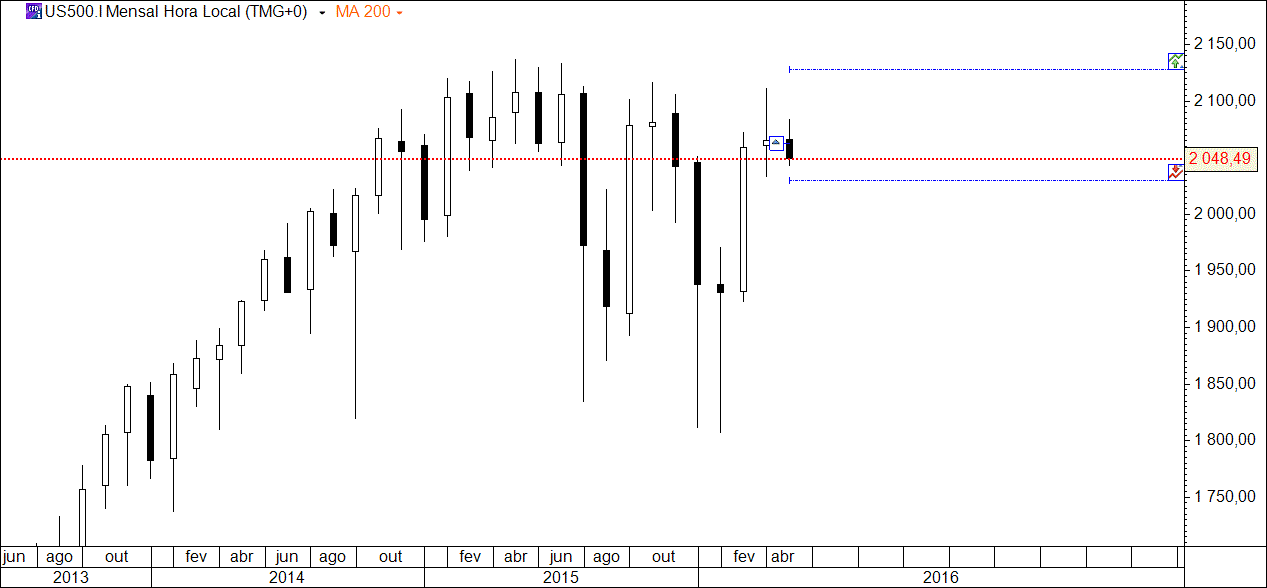Mas mesmo o gráfico mensal é preocupante, o que me leva a considerar mudar o meu stop para um "stop and reverse"...
