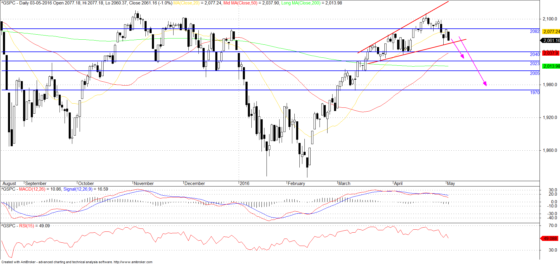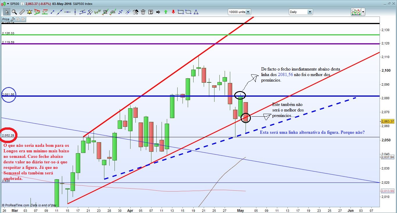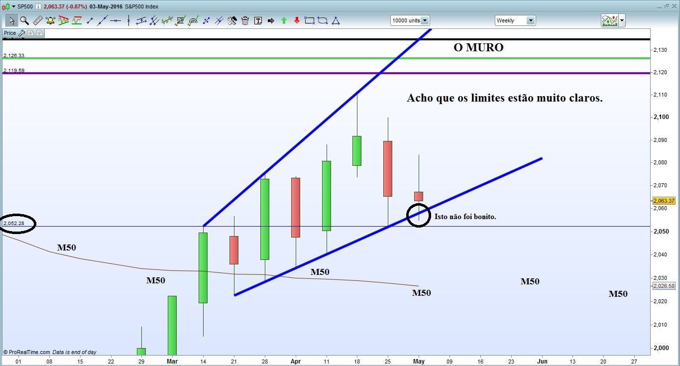Assim sendo, e se tenho estado a olhar para a Wedge, à que respeitá-la! Se ela quebrar em baixa no Semanal e principalmente se for abaixo dos 2052,28 a ida ao Muro lá de cima fica comprometida para já. Depois tudo depende da M50 essa Grande Barreira de coral que protege os Alicerces do Grande Muro ... Pessoalmente falando, se o Preço quebrar as Wedges terei que abandonar a postura Longa que me tem acompanhado. Se quebrar a M50.......