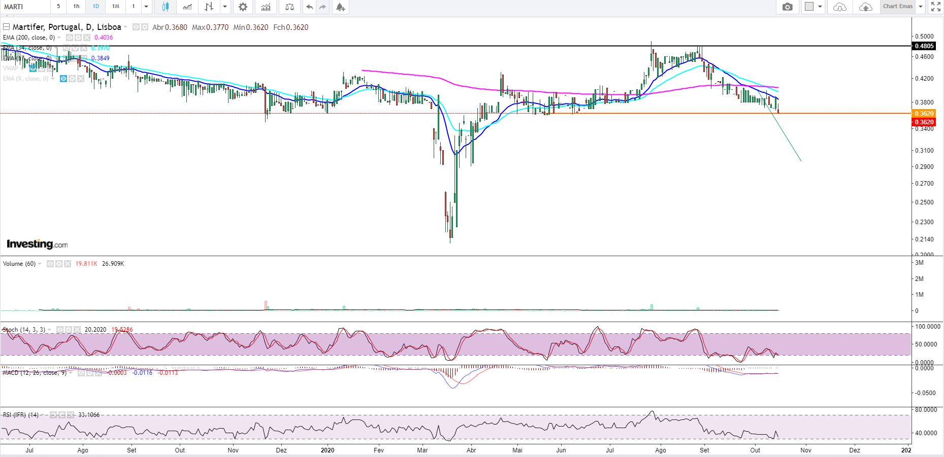 Se a Martifer não reagir aí nos 0.3620€ abre caminho para ir aos 0.31€ a 0.29€.
