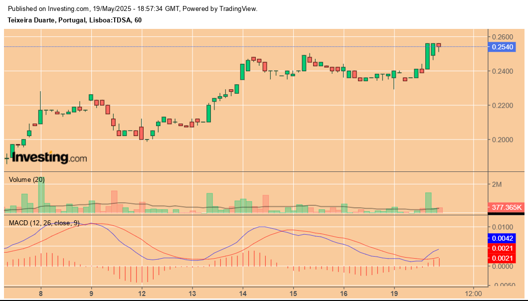 Se esta ação fosse um avião seria facil explicar a subida rápida, algumas ou alguma agência de viagens tinha urgência em reservar uns lugares na frente do avião e em pacote com algum desconto, duma forma controlada durante as sessões aparecia e desaparecia do mercado e terá conseguido fazer isso mesmo ao ritmo que queria . Sim durante o processo algumas familias tiveram a possibilidade de ocupar alguns lugares embora sempre com preços controlados e com aparentes sustos durante o processo de reserva .