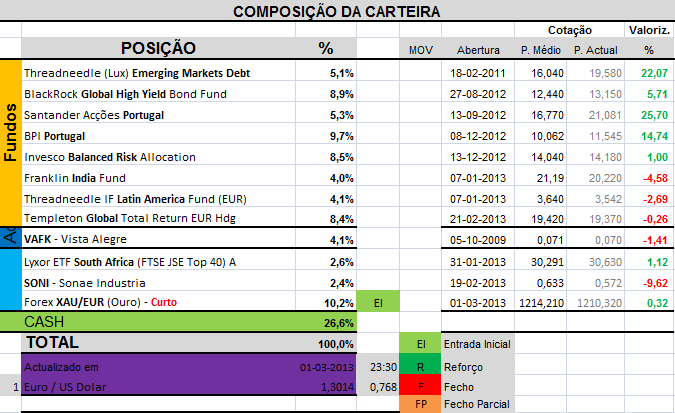 Aqui está o Balanço do 1º trimestre, depois de um mês de Janeiro muito Bom eis que Fevereiro e Março comeram quase por completo a rentabilidade...
