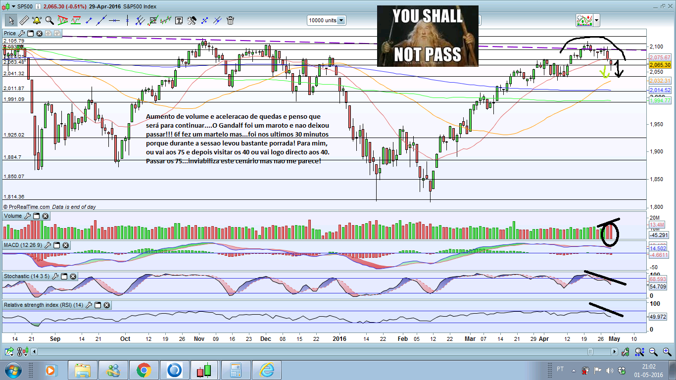 O adagio popular "Sell in May and go away " aproxima-se a passos largos e com indices em maximos e principais indicadores todos esticados, não vejo grande margem de progressão para os proximos 2 meses.