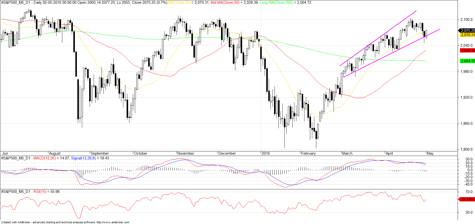 Quanto ao dia de hoje só não gostei de o fecho ter sido imediatamente abaixo daquela resistência/suporte dos 2081,56. Espero que isso não seja um mau sinal (penso que não).