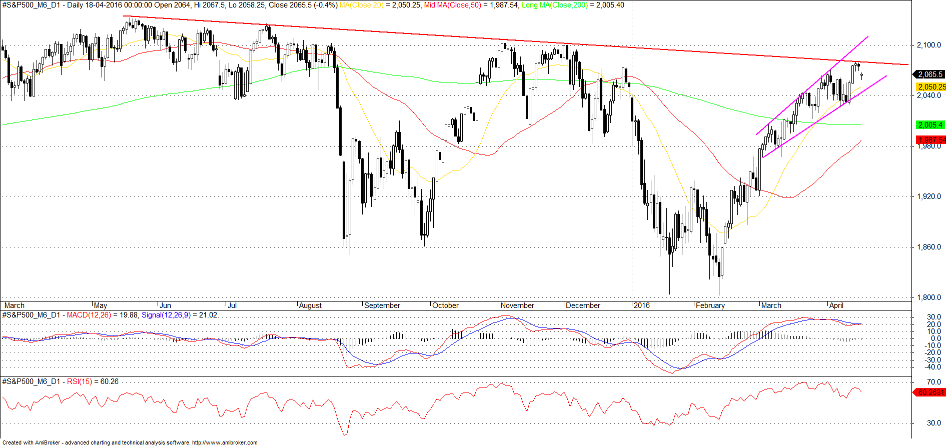 a relaçao petroleo/dolar é conhecida, como nao houve um acordo para o congelamento da produçao na opep, o petroleo ira certamente sofrer com alguma intensidade. o peso das industrias ligadas ao petroleo, embora nao seja tao visivel é preponderante em qualquer indice. o index dollar está em niveis de sobcompra e a tendencia do indexdolar no medio prazo será para subir, no setor financeiro goldman sachs apresenta resultados fracos, no tecnologico microsoft apresente resultados com expectativas baixas.