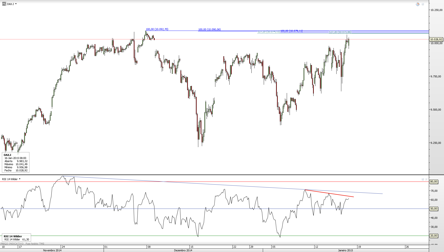 Limonov, de um ponto de vista mecânico, a trade short é "no brainer". tem uma divergencia de momentum com um possivel duplo topo. o nivel de stop é claro: stop em novos maximos historicos, acima dos 10100. agora, há probabilidades relevantes de o stop ser activado? há. mas se os mercados americanos continuarem em queda esse short pode render bem em pouco tempo.