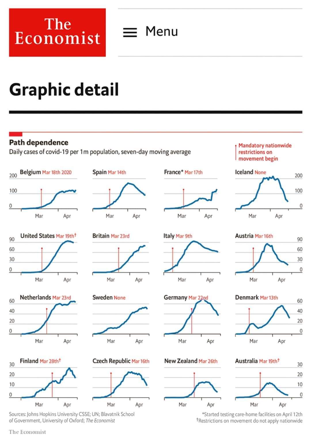 A Noruega, por exemplo, foi dos paises que mais tarde atuou e está em melhor situação. Quando decretou o lockdown tinha 7 mortos (1.3 mortos por milhão) e 2.385 casos (0.0444 %)
