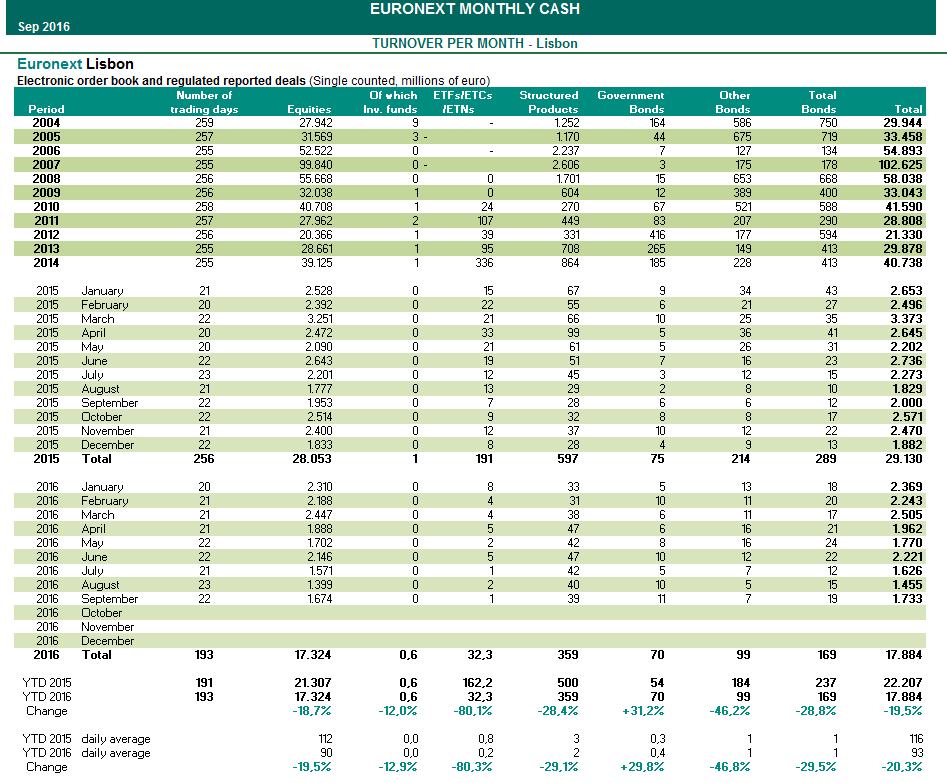Há queda de volume em vários índices europeus (principalmente no último ano), mas por cá tem-se notado de forma mais acentuada e num período mais abrangente: