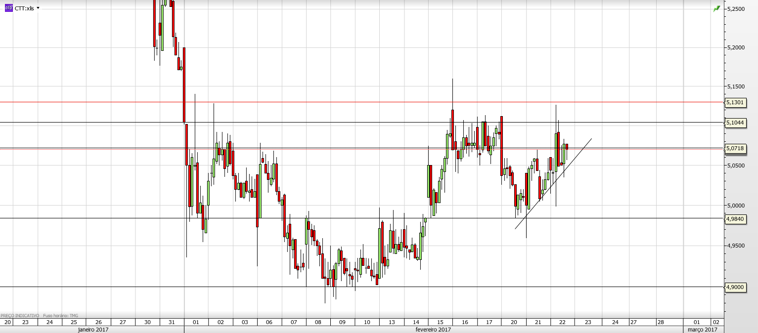 Comentário diário sem alterações nos CTT que continuam a sua demorada consolidação no canal (4.9 mega suporte/5.66 topo/5€ não têm relevo como suporte).