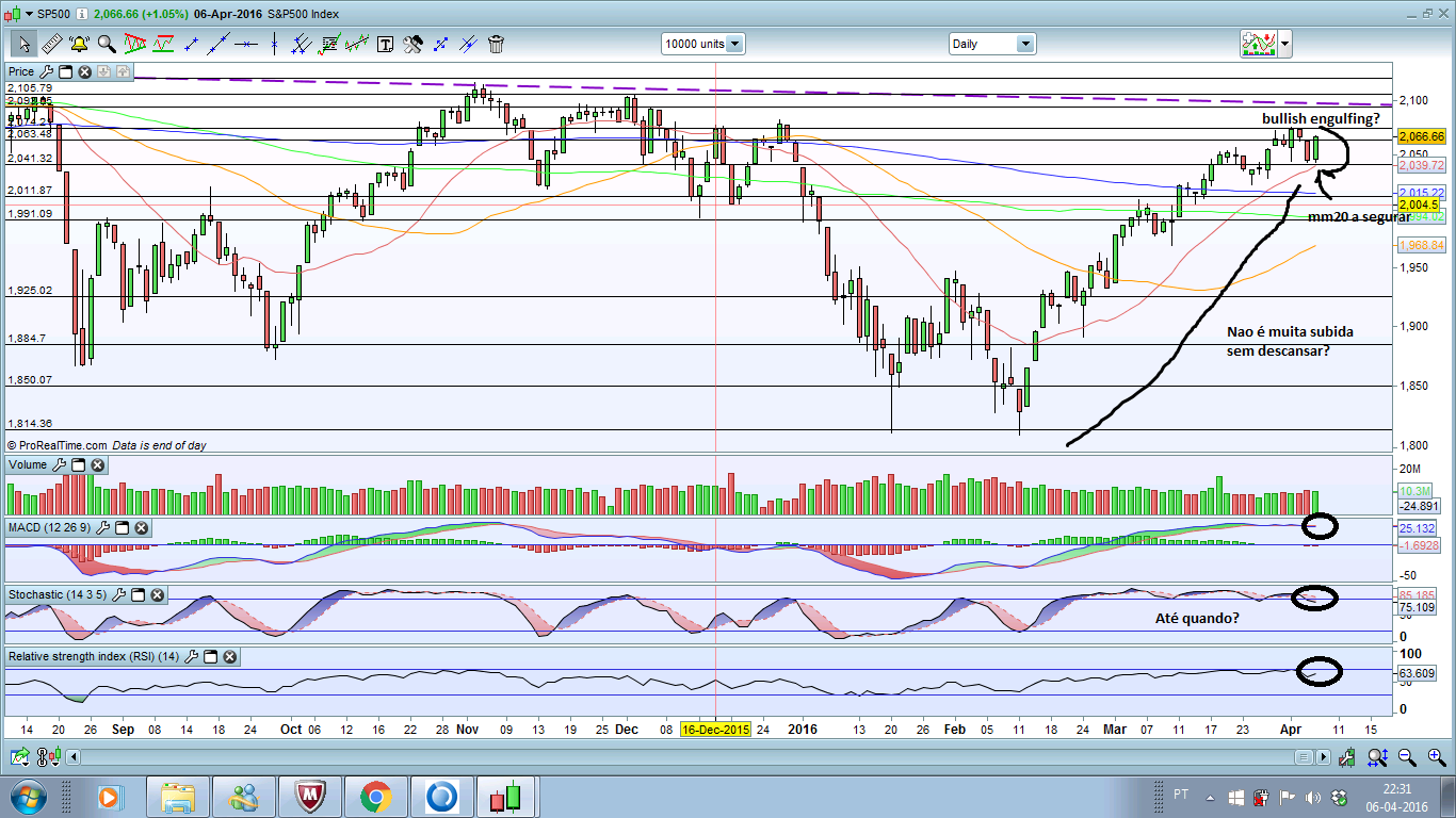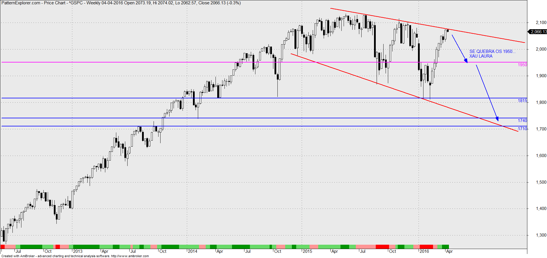 Quanto ao sp a ideia descrita algum tempo atrás é a do preço testar a zona onde está ou até mais acima 2100 e depois lateralizar entre esse valor e os 2020---1900 isto porque são duas zonas de suporte fortes, tal como os 2100 são uma resistência importante, daí as quedas esperadas talvez não sejam assim tão acentuadas.
