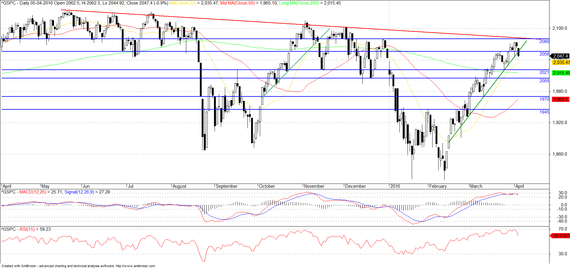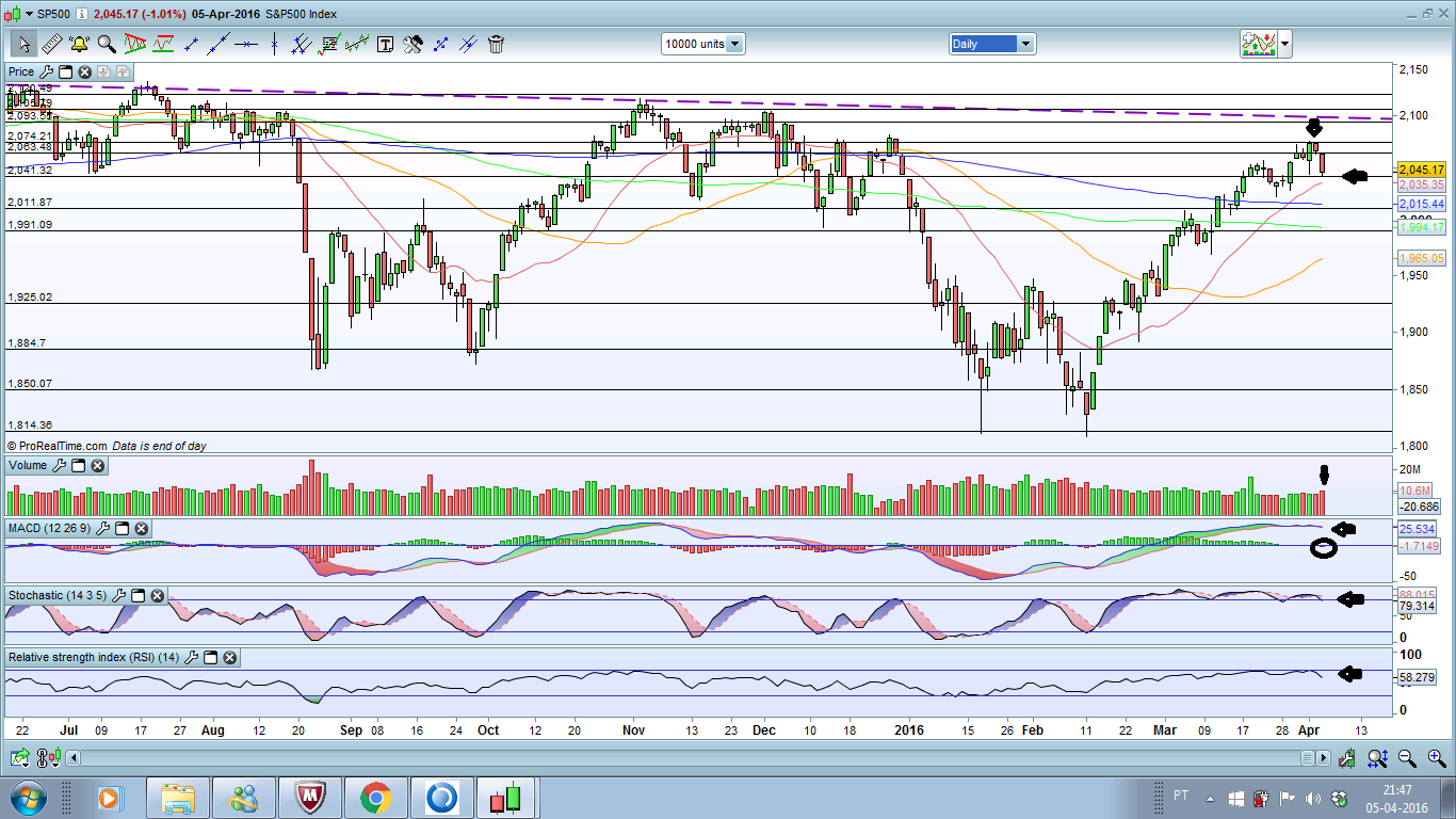 É certo que o Canal ascendente foi quebrado. É também certo que o Preço quebrou em baixa aquela LTD. E?... É também certo que aquele suporte nos 2045/43 tem uma certa relevância, mas mais importante é a M50 no semanal enquanto o Preço estiver por cima dela nada muda. Até acho que estas quedas são salutares e gosto de ver os indicadores todos a darem sinais de alarme.