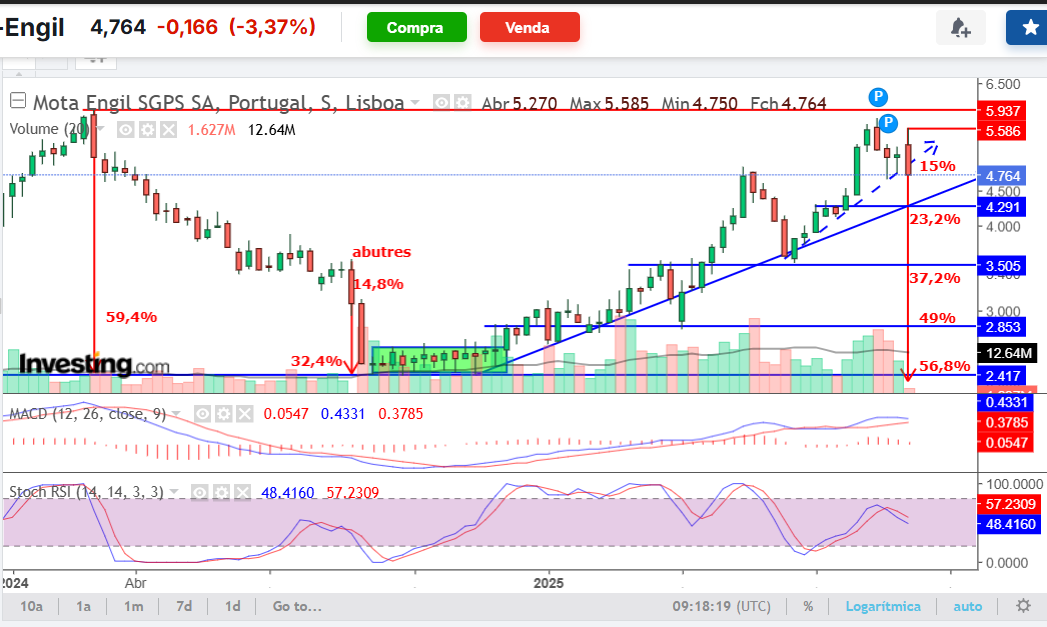 Boa perspetiva como habitual, Vale. Até aos 4,30 a LTA continua a fazer-se valer. A Mota é para barba rija, já se sabe, mas acompanhando-a com algum pormenor há quase 30 anos posso dizer que não me lembro de um período temporal tão volátil (micro, dias com mais de 5% para cima ou para baixo sucessivos) como este último ano… quem faça swing trading deve ver-se aflito.