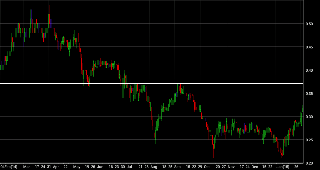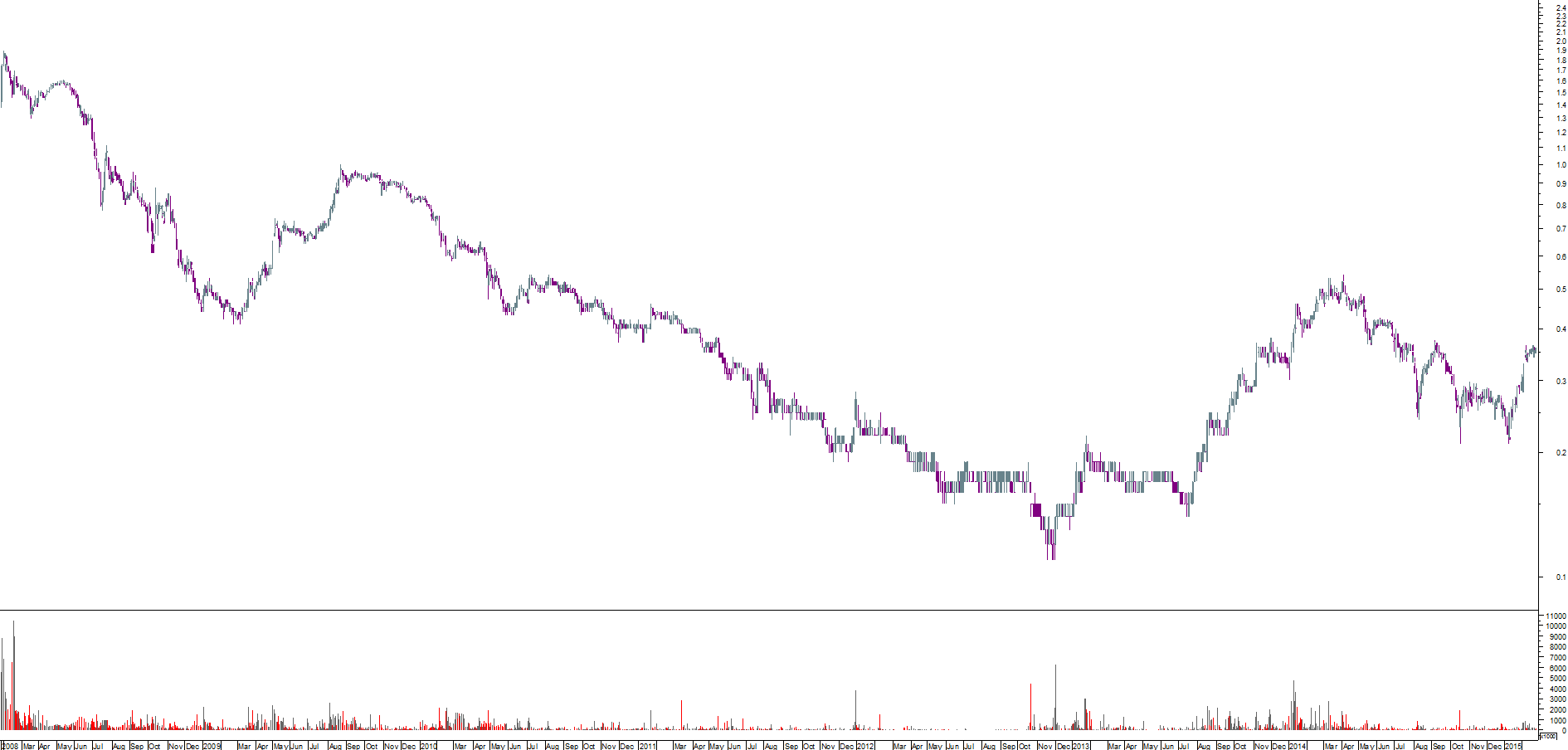 Uma acção a ter em conta este ano, a evolução que a mesma vem a fazer desde dia 12 de Janeiro antevê a mudança de tendência, agora precisa de fôlego para poder superar com consistência a zona dos 0.38 agora falta saber a reacção de hoje dos mercados aos mesmos se é o suficiente para quebrar a resistência.