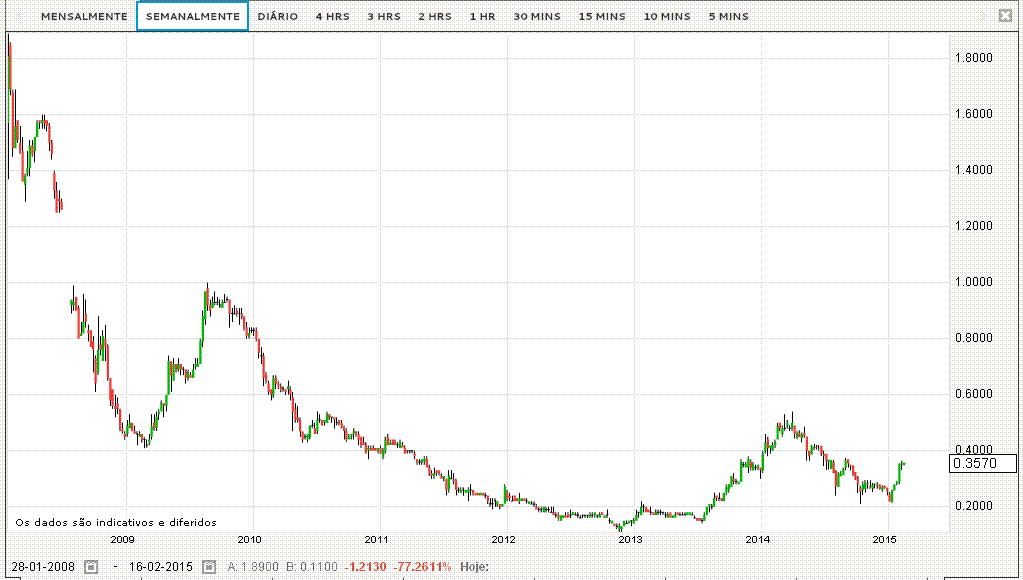 Caminho aberto até a próxima resistência que está ali entre os 0.36, 0.37, depois de ter superado os 0.27 tem o caminho aberto a recuperação.