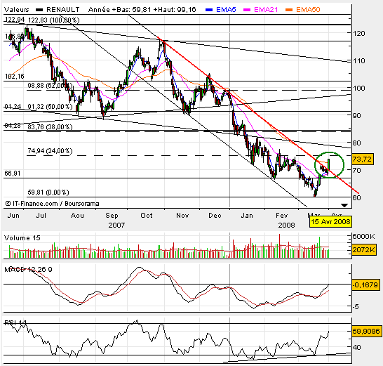 Boa tarde ao fórum. Crio este tópico para chamar a atenção para a Renault que acaba de quebrar em alta o topo do canal descendente que tem vindo a condicionar a evolução do titulo durante todo este periodo bear que temos vindo a atravessar. `