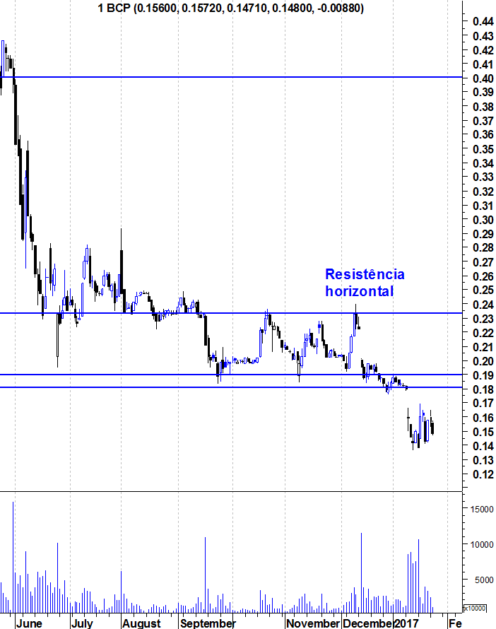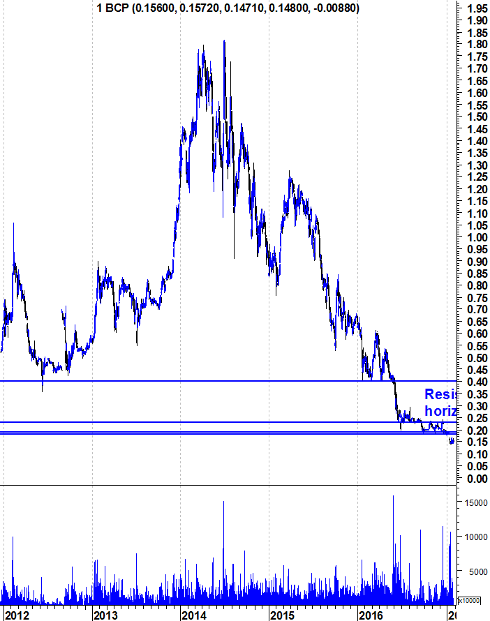Custo da ação BCP, via direitos: 0.880 --> 0.1527 (-2.6%)