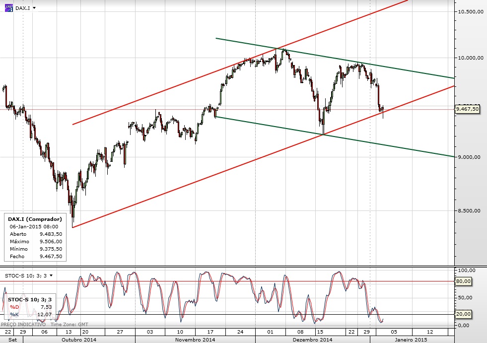 Os gráficos mensais têm uma candle duvidosa, subida com muito pouco volume, parece possível uma descida gradual e sem pânico, mas isto já se dizia quando o Dax foi aos 9000! Até para reforçarem para a dividend season, principalmente nas empresas com grandes dividend yield. Se quebrar os 9000 vai aos 8000 com paragem nos 8500 e se quebrar os 10000 vai aos 11000 mais cedo ou mais tarde, é a única certeza que mantenho.