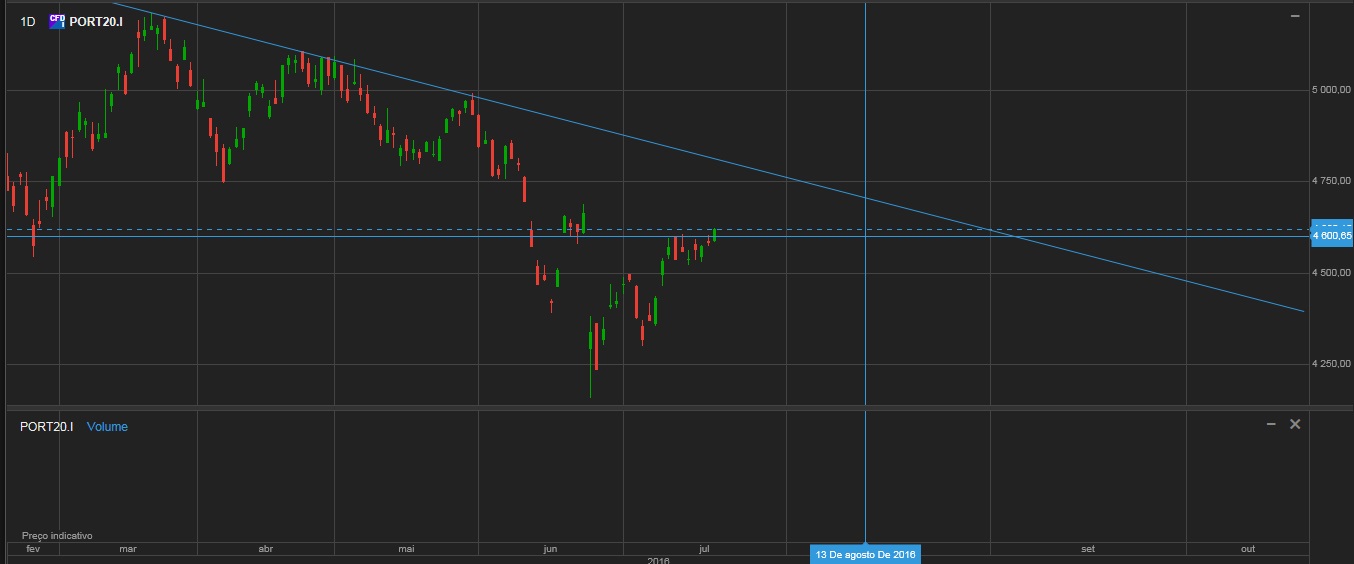 Está a fazer um bom fecho de vela mensal. No semanal o ressalto pós-brexit aproxima-se da MA20.