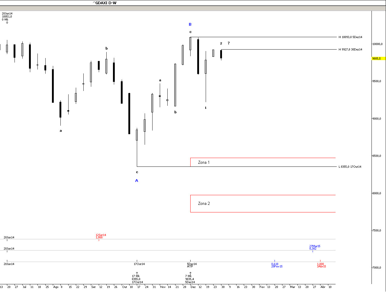 Apesar de prematuras, apresento para já duas zonas alvo. A primeira situada entre os 8470 e os 8355. A segunda zona entre os 8000 e os 7749.