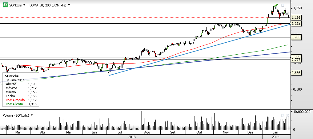 O gráfico histórico http://finance.yahoo.com/q?s=SON.LS parece-me o mais bem executado e mostra bem o ajustamento.