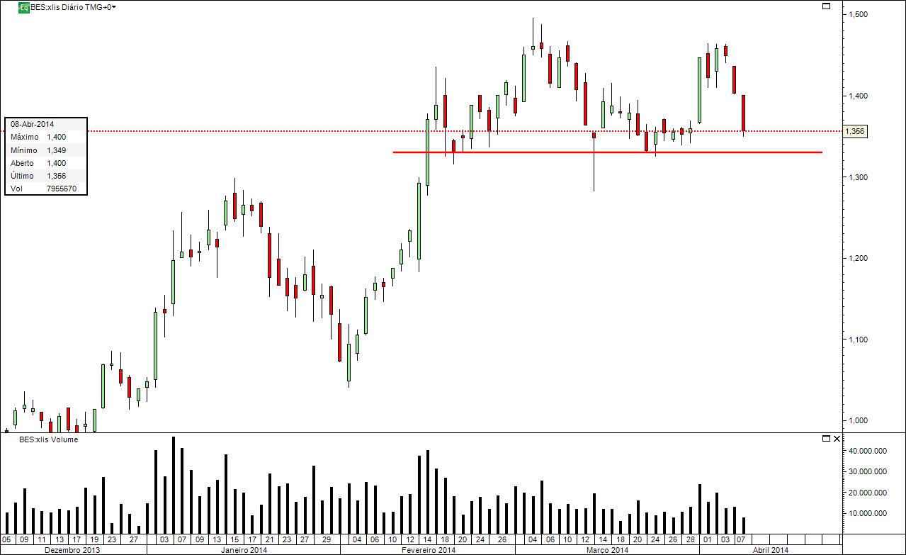 Long BES 1,33. Motivo: Atingiu EMA 50 e Limite minimo da lateralização.