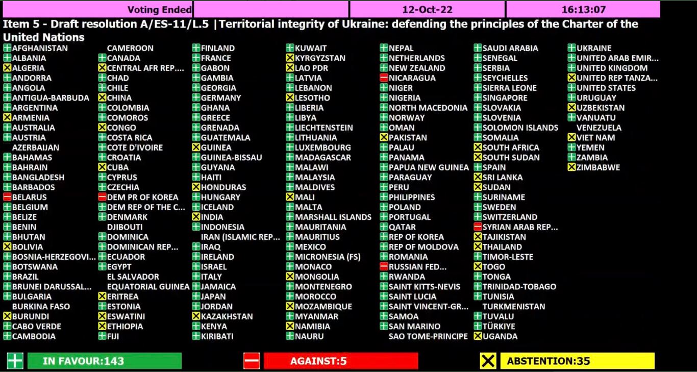 Neste tipo de votação a abstenção é quase o mesmo que votar contra. Em teoria significa que não vão participar em qualquer acção contra a Russia, se bem que a ONU não serve para nada na pratica.